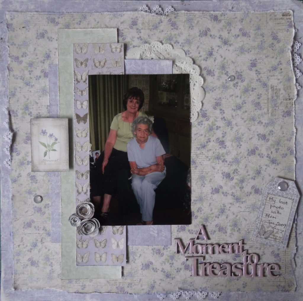 As it is Mothers Day today I worked on this layout..this was the last photo I had taken with my Mum in Jan 2009..she passed away in the July after..This is for Challenge yourself blog sharing a page about Mothers.