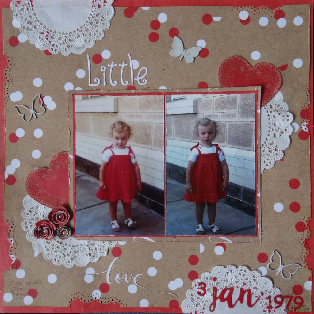1. A charming page with that sweet photo of your daughter. Lovely to have a memory of your home in the background. The red highlights are perfect with the dress. Thanks for joining in with Kraft+ .